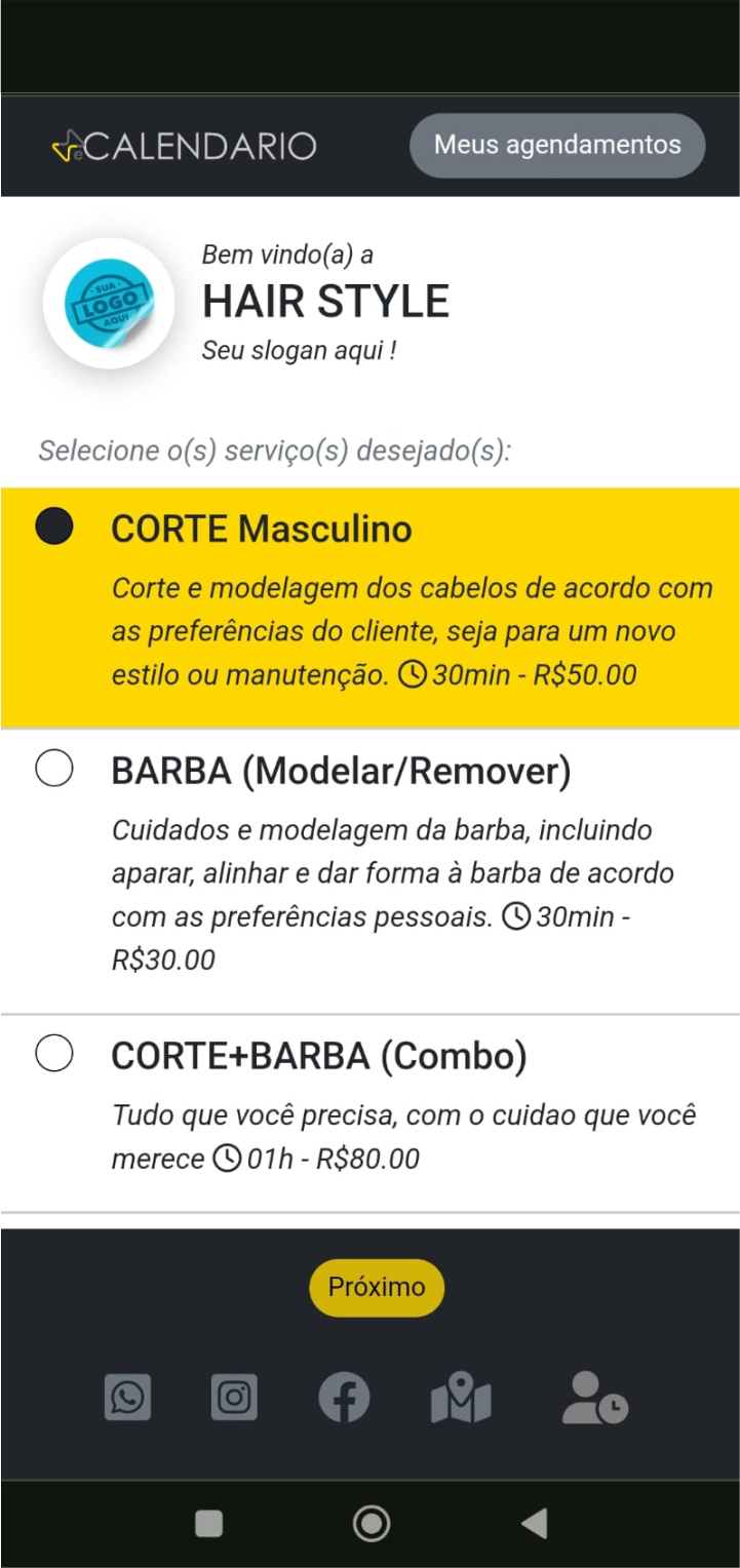 Com informações claras e tempo de cada serviço, é muito simples para seu cliente escolher o que deseja.