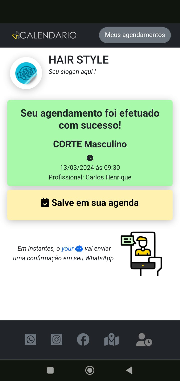 Um verdadeiro assistente virtual, que atende, informa seus horários livres, e faz todo o processo de agendamento com seus clientes.