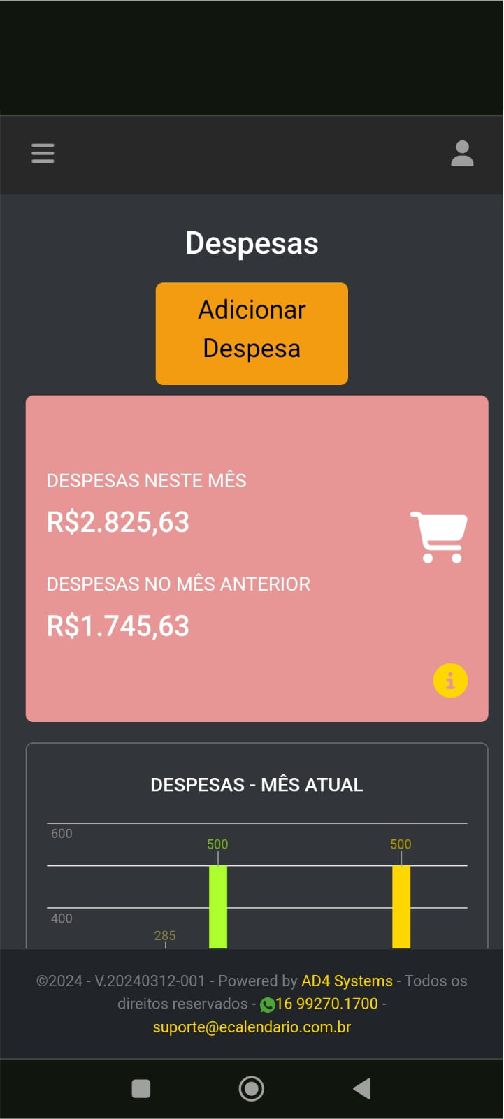 Informações simples e visuais das suas vendas e despesas. Controles completos para você saber onde está indo seu dinheiro.